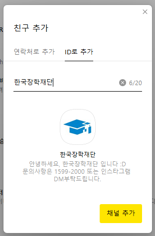 ▼PC에서 ID로 추가-한국장학재단 검색